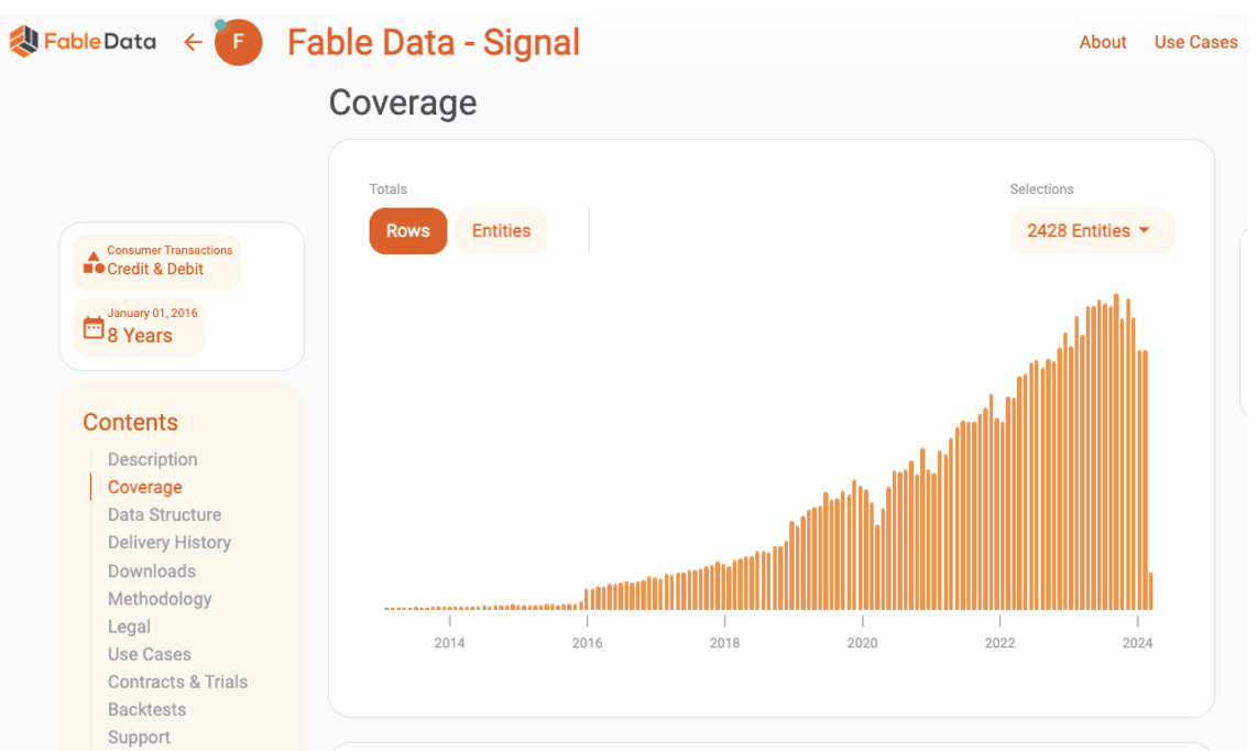 Figure 2: Fable Data’s Storefront of Eagle Alpha Explorer Platform. (Click on the image to explore Fable Data’s coverage and Data Structure.)